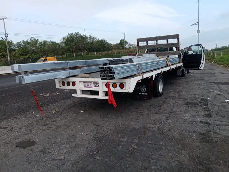 Transportamos maquinaria industrial, equipo de construcción, estructuras, vehículos, materiales para la obra como varilla o tubo, y cualquier otro material que requiera una plataforma estable y segura.